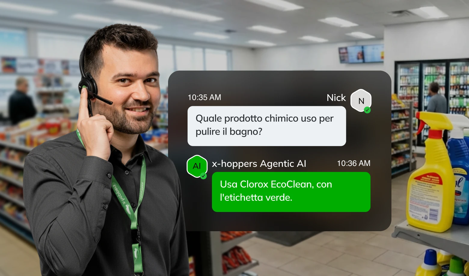 Nel frenetico mondo della comodità, il tuo team è costantemente impegnato a destreggiarsi tra mille task, procedure ed esigenze dei clienti. x‑hoppers va oltre la semplice comunicazione, offrendo ai tuoi collaboratori l’accesso a un potente assistente AI, progettato per automatizzare i flussi di lavoro e garantire che i tuoi store offrano esperienze coerenti.