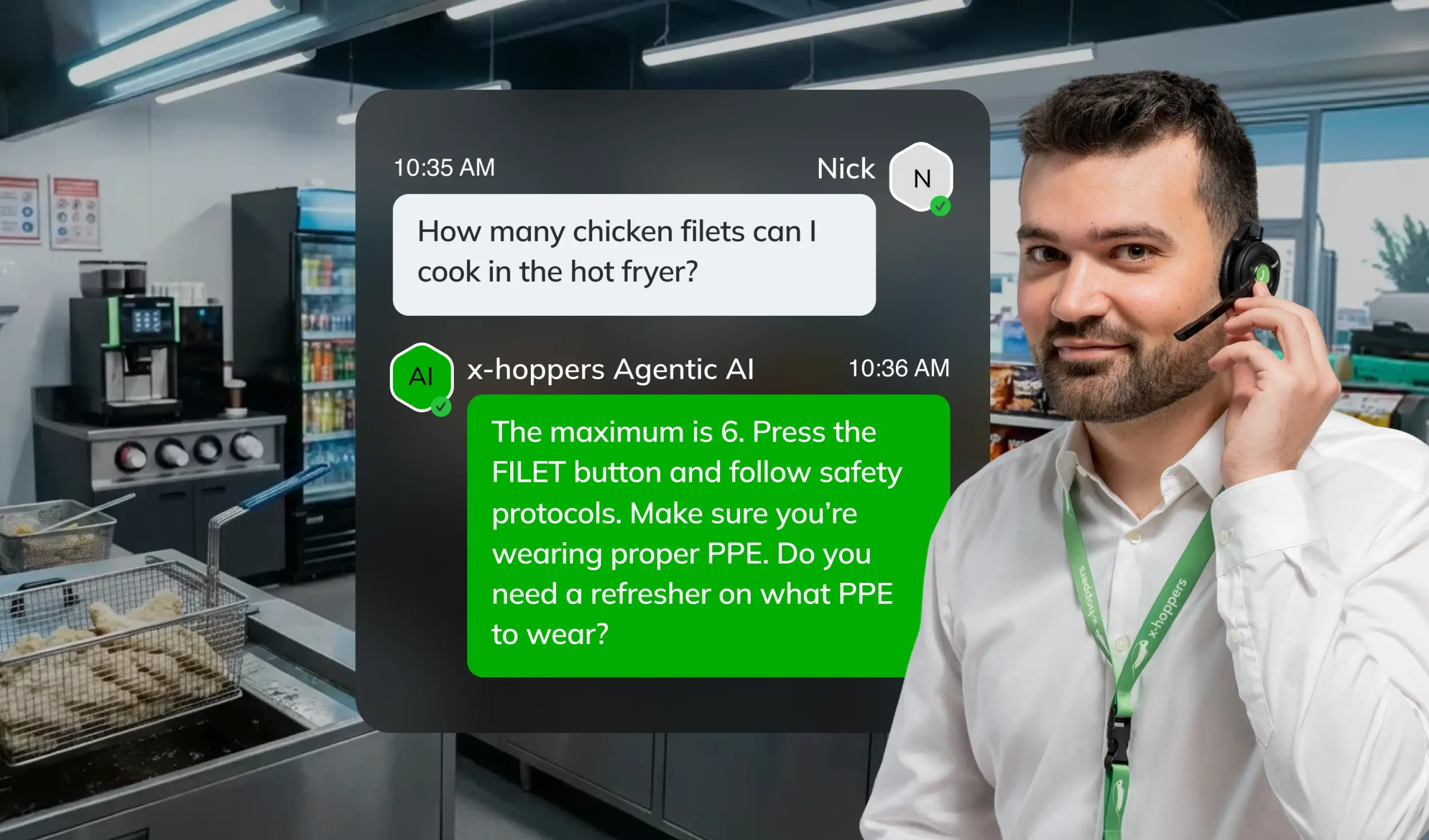 Our AI assistant acts as your digital handbook, providing instant, hands-free answers to any procedural question — from food safety protocols to handling a fuel pump error.
