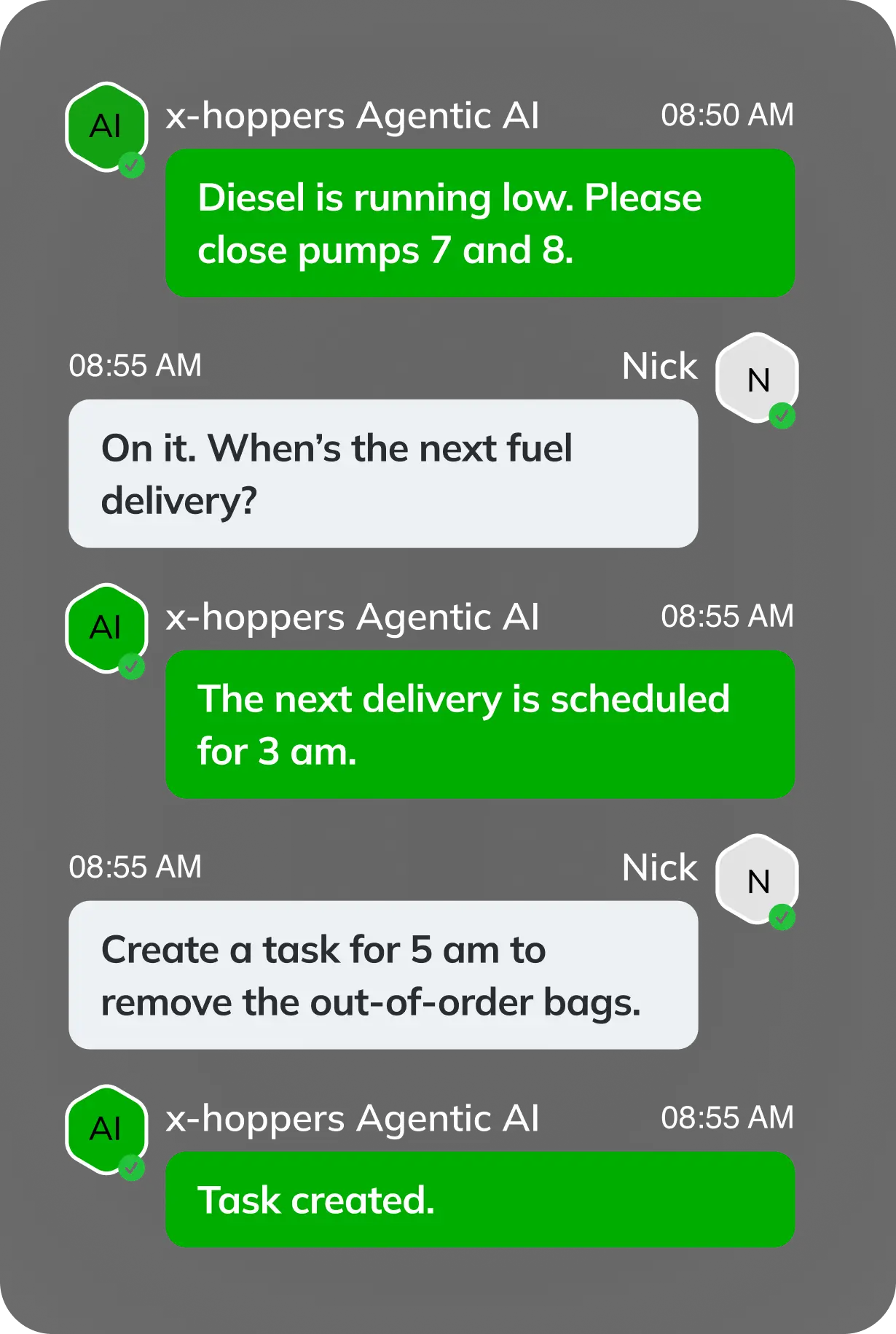 In the fast-paced world of convenience, your team is constantly juggling tasks, procedures and customer needs. x-hoppers goes beyond simple communication by giving your team access to a powerful AI assistant, designed to automate workflows and ensure your stores deliver consistent experiences.